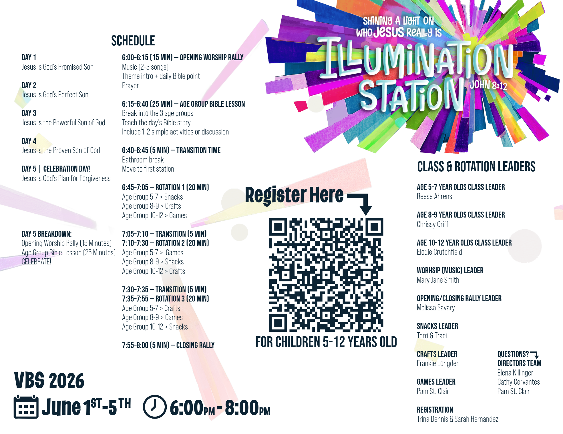 During VBS kids will explore all the ways light brightens, illuminates, reflects and reveals.